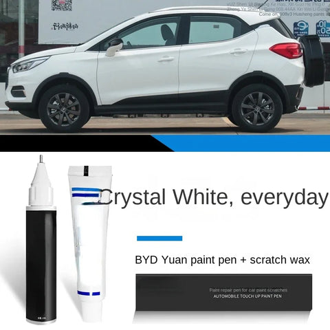 Restore the original shine of your BYD ATTO 3 or Yuan Pro with this Crystal White Paint Repair Pen—specially formulated to repair small surface scratches with ease and precision. Ideal for touch-ups on shallow paint damage, this dual-use pen offers both brush and pen-tip application to match your needs.