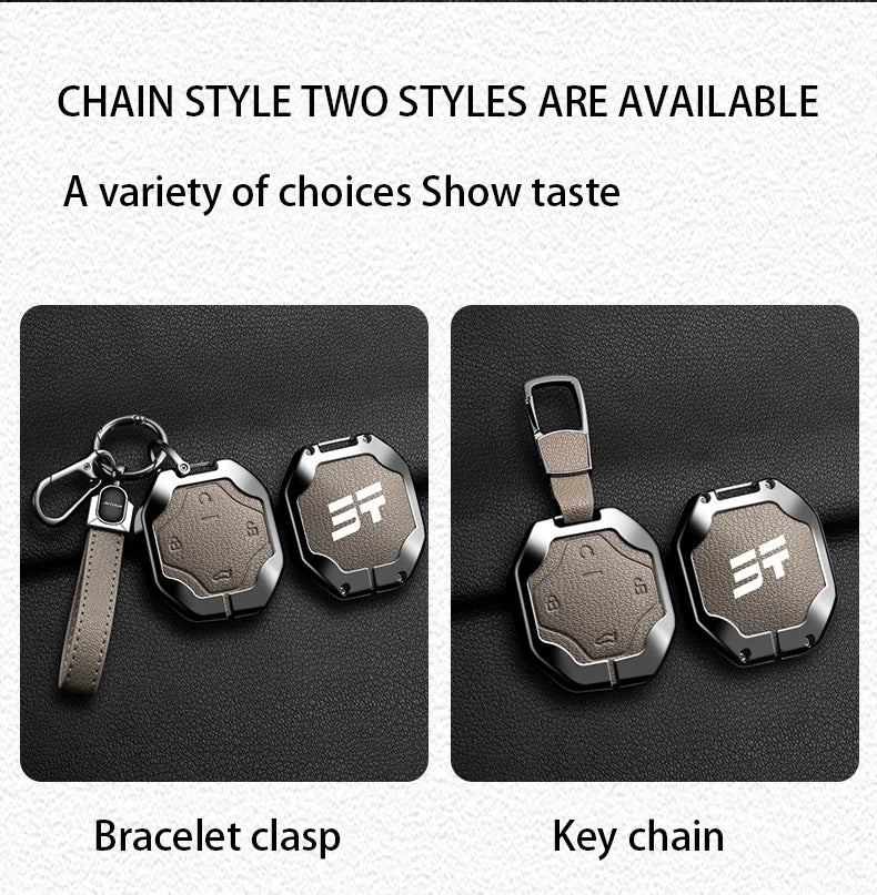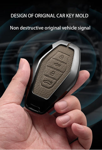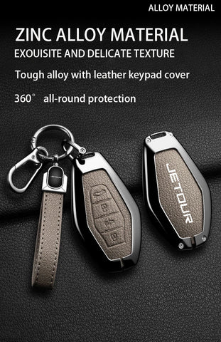 Give your car key a luxury upgrade with this Zinc Alloy Goatskin Grain Key Case, custom-made for the Chery Jetour Traveller and T2 (2023–2024) models. Designed for both style and protection, this full-cover key holder features a durable galvanized alloy frame paired with an elegant goatskin-textured surface for a premium feel.