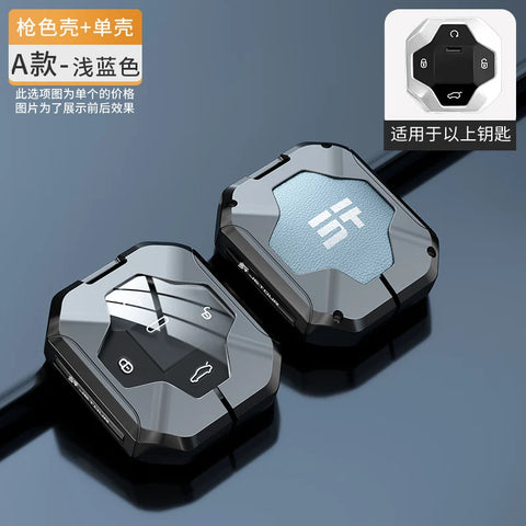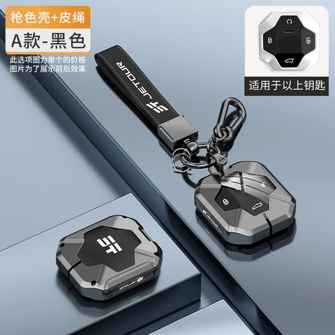 Zinc Alloy Leather Key Case with Chain for Chery Jetour Traveller 2023-2024 - gun blue ring / CHINA