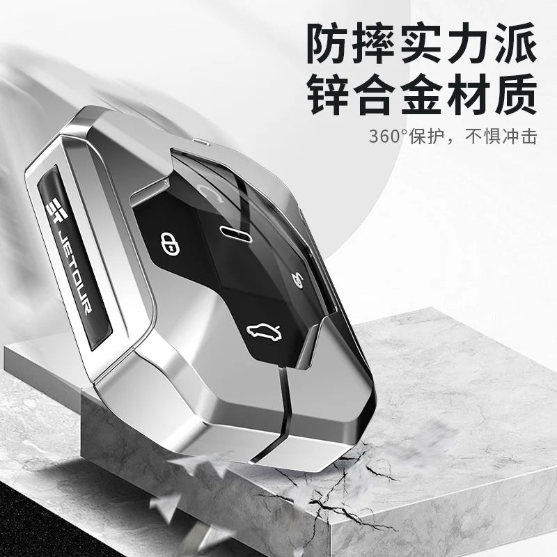 I love how this key case feels—solid zinc alloy edges and smooth leather finish. It fits my Jetour Traveller key like a glove, and the chain is really useful for hooking onto my bag. Looks stylish and feels secure.