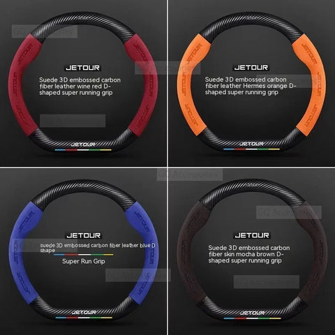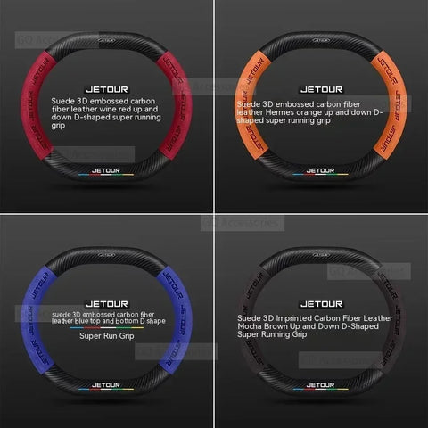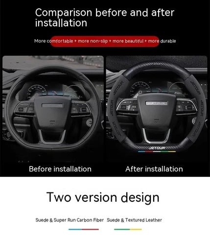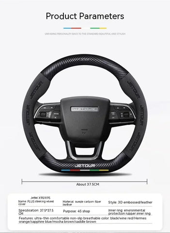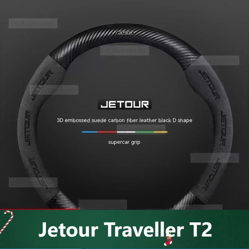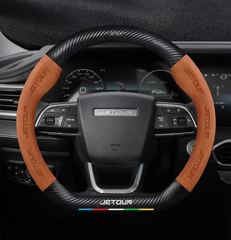 Upgrade the look and feel of your Chery Jetour Traveller T2 (2023–2024) with this premium Suede Carbon Fiber Steering Wheel Cover. Designed for drivers who value comfort and sporty aesthetics, this cover combines 3D embossed suede and carbon fiber texture for a luxurious, non-slip grip.