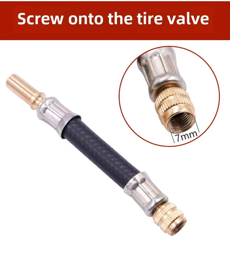 💡 Perfect for dual tires and hard-to-reach valves, this accessory helps you inflate or check pressure with ease—no more struggling with awkward angles!