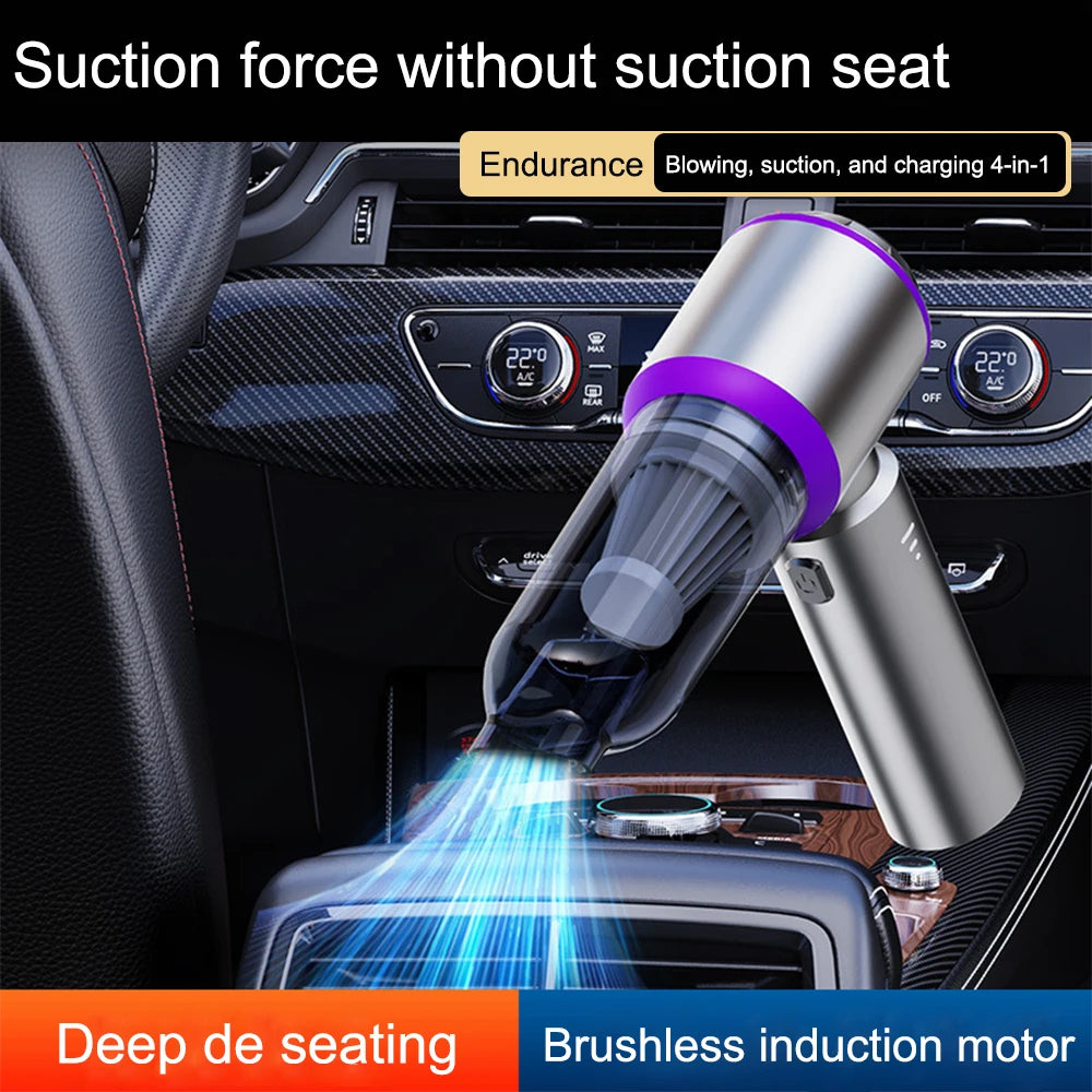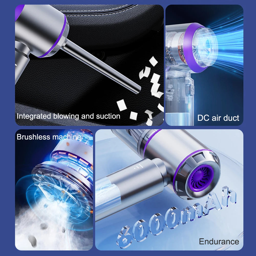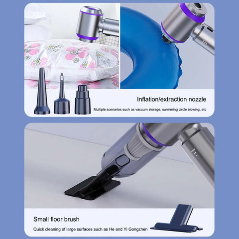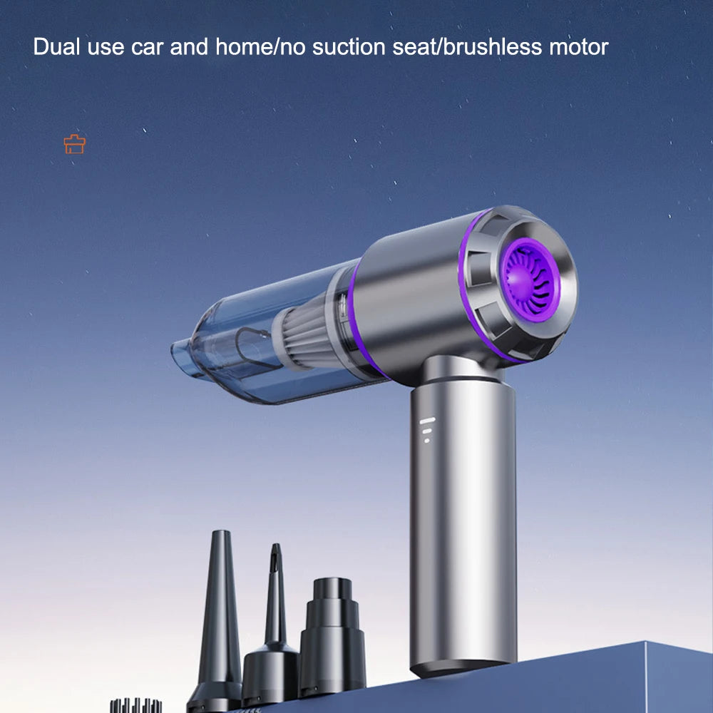 6-in-1 Wireless Car Vacuum Cleaner with Power Display & Air Blower - Purple