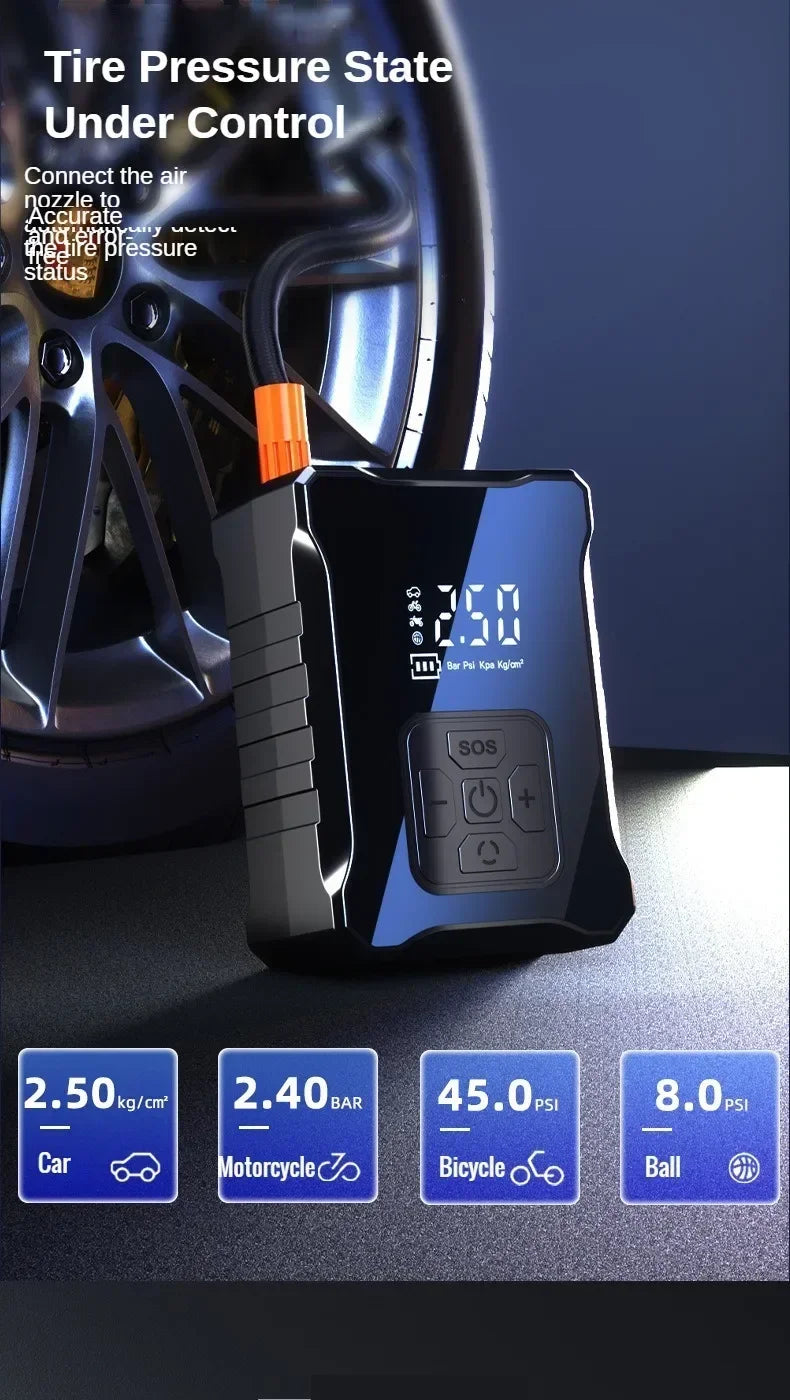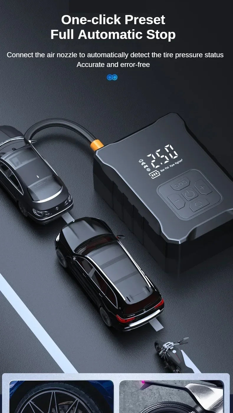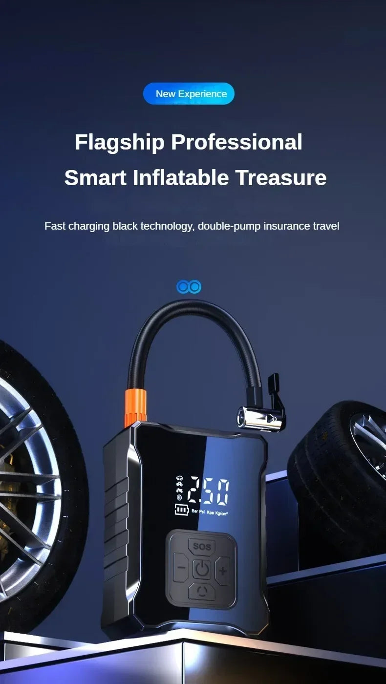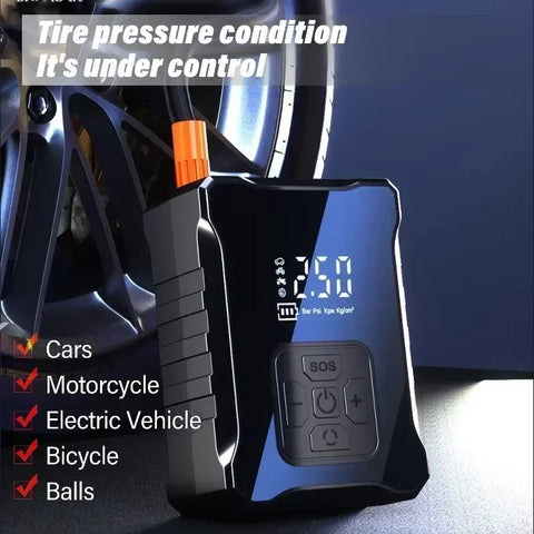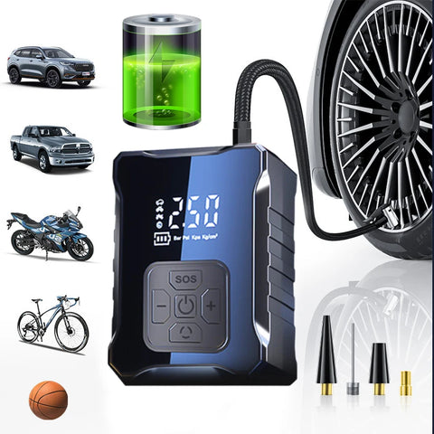 Inflate your tires anywhere with this Portable Electric Tire Inflator – a compact, rechargeable air pump with a digital screen, perfect for emergencies or everyday use.