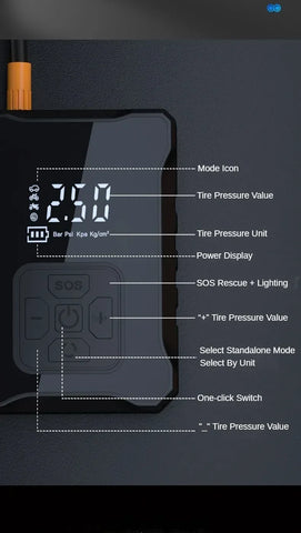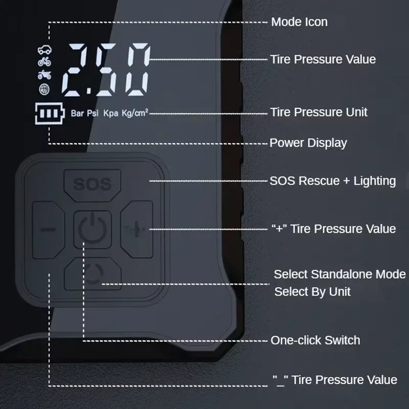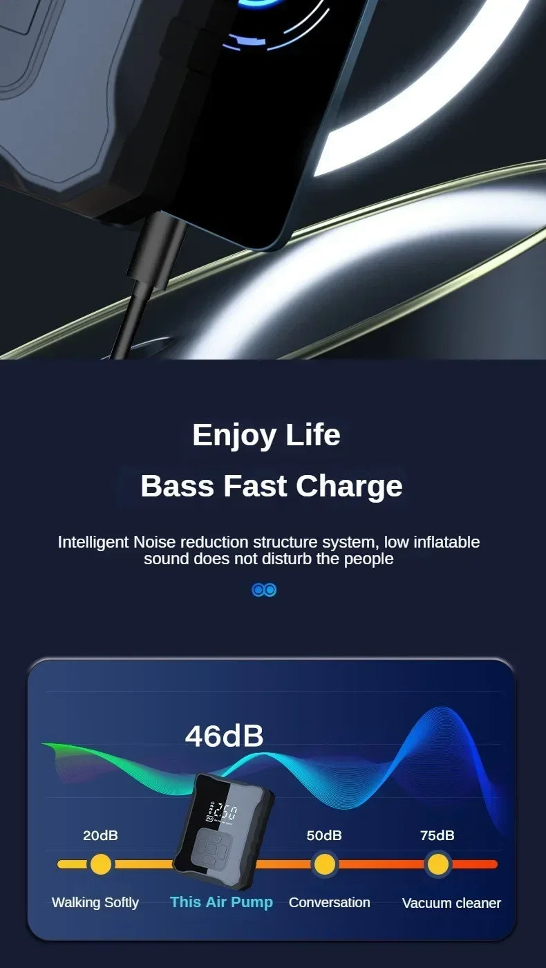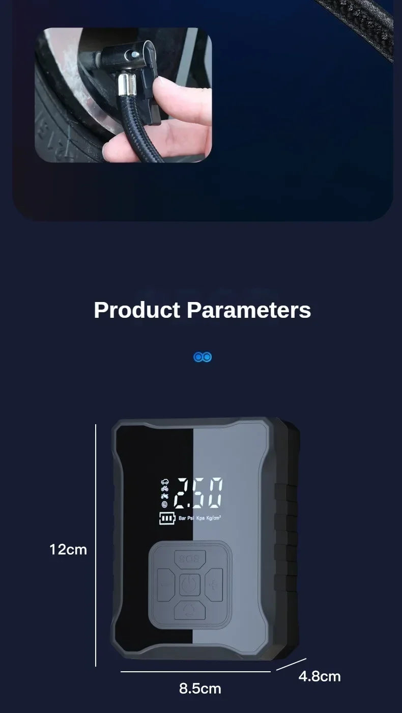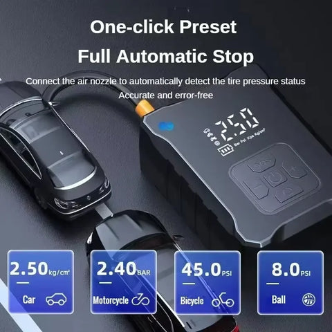 Inflate your tires anywhere with this Portable Electric Tire Inflator – a compact, rechargeable air pump with a digital screen, perfect for emergencies or everyday use.