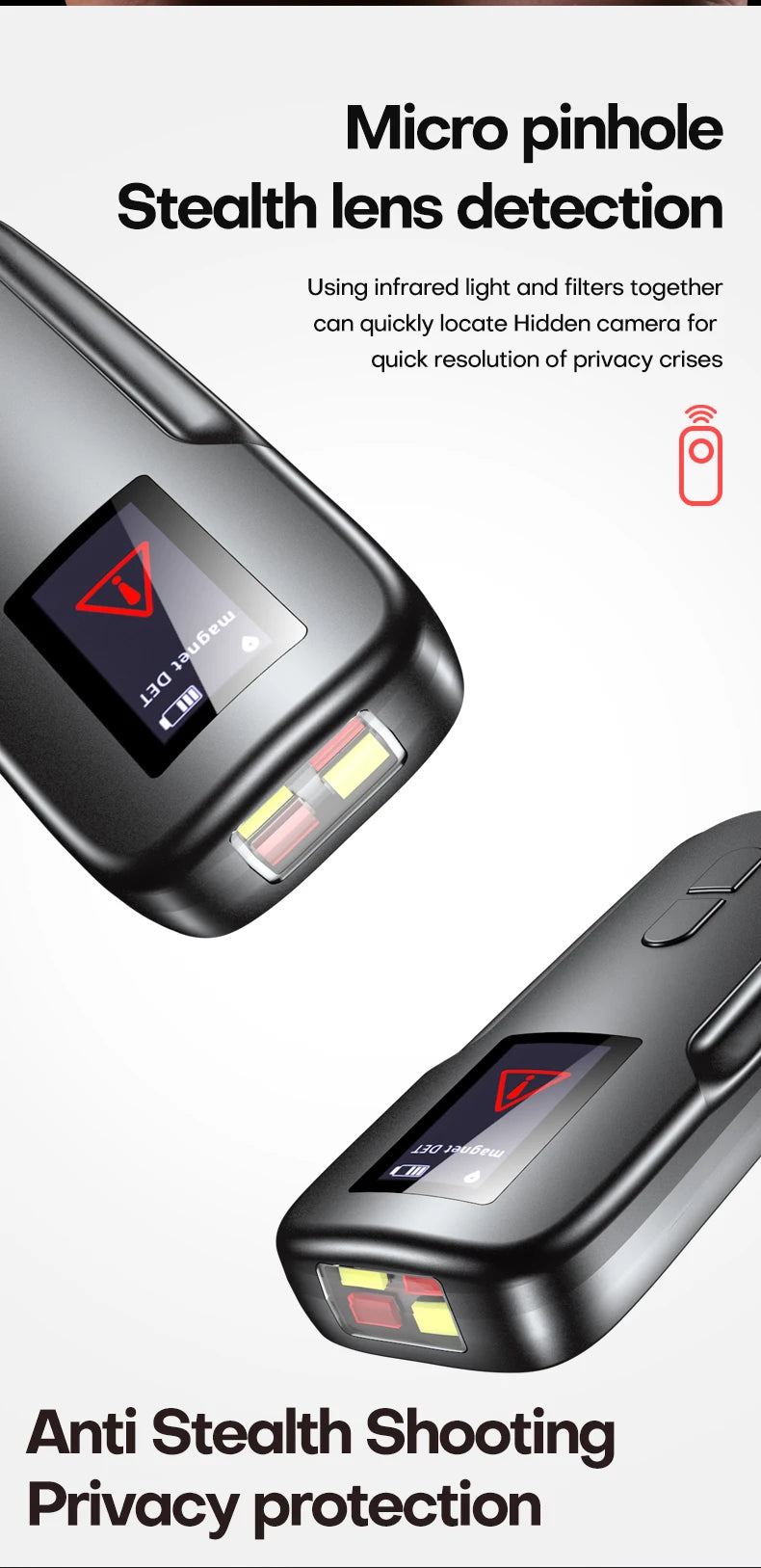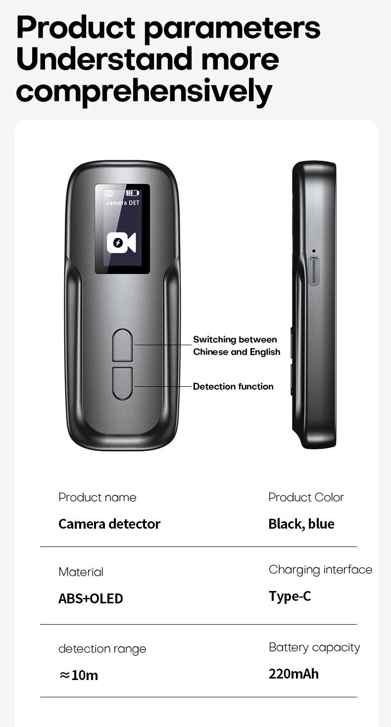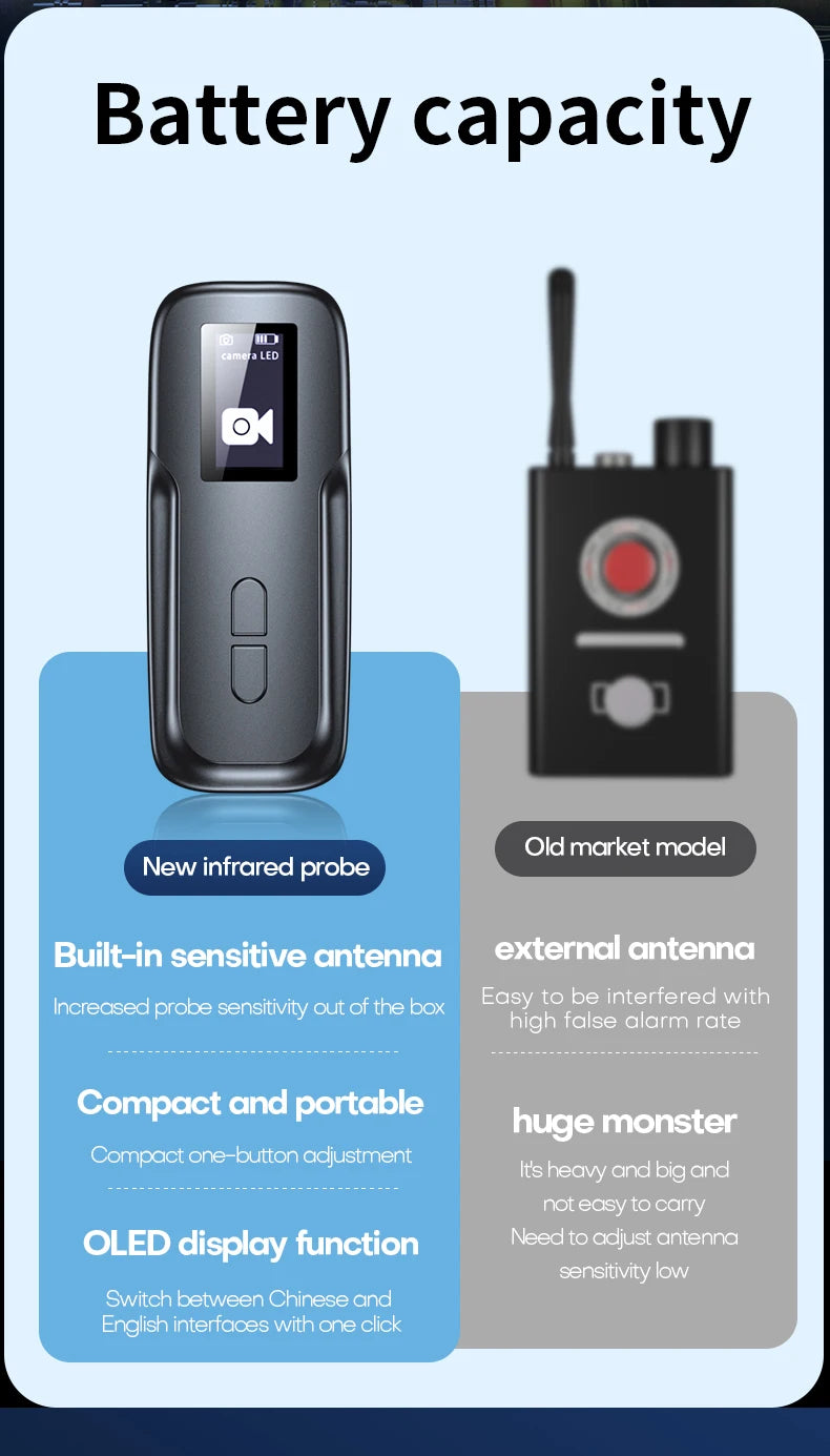 Stay one step ahead of intruders with this Anti-Spy Hidden Camera & GPS Detector. Whether you're in a hotel, car, office, or rental, this compact gadget scans for hidden cameras, GPS trackers, and wireless bugs, helping you detect and eliminate potential threats.