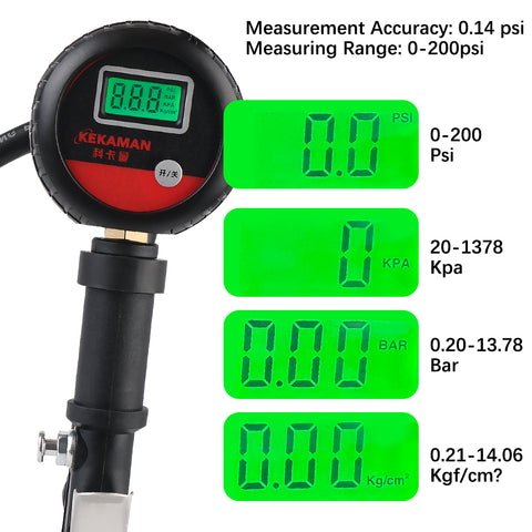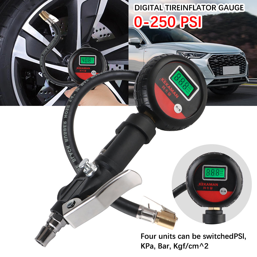 Ensure optimal tire performance and safety with this High Precision Digital Tire Pressure Gauge. Equipped with an advanced digital chip and a 2.5" backlit LCD display, this tool delivers ultra-accurate PSI, Bar, KPA, and Kg/cm² readings, making it ideal for cars, motorcycles, trucks, and SUVs.