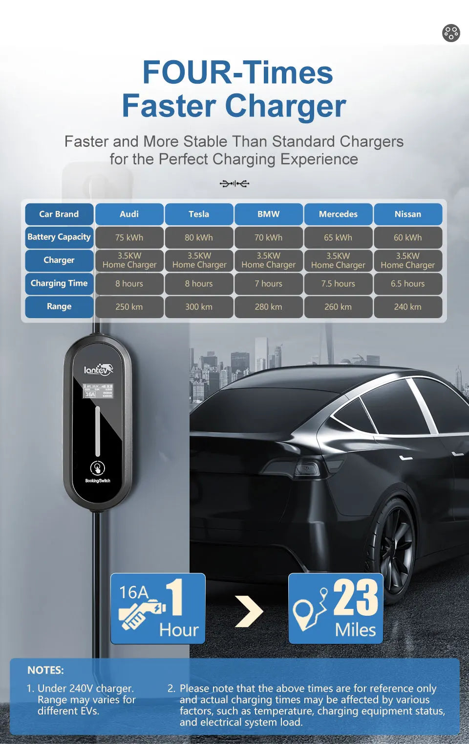 🔋 Fast Charging: Delivers up to 3.5kW of charging power